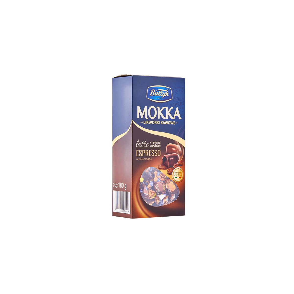 Likworki o smaku espresso w czekoladzie 25% – masa kakaowa minmum 48% i smaku latte w czekoladzie mlecznej 25% – masa kakaowa minimum 38% . Cukierki polskiej firmy Bałtyk pakowane w swiątecznym kartoniku po 180g. Sprzedaż tylko na całe opakowania a jednym znajduje się około 30 cukierków. Produkt idealny na mały prezent. Termin ważności minimum 3 miesiące od zakupu.