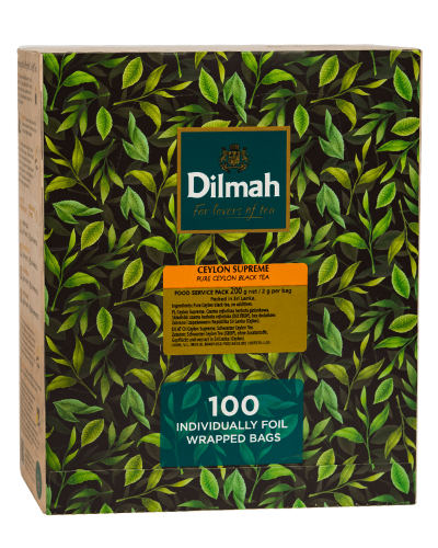 Przygotowana przez herbaciarnię Dilmah kompozycja Ceylon Supreme zawiera wyłącznie najdoskonalsze liście czarnej herbaty cejlońskiej, pochodzące z upraw znajdujących się na żyznych glebach na wysokości 1200 m n.p.m. Mieszanka ta zapewnia napar o niezwykle głębokim aromacie oraz pełnym smaku i intensywnej barwie. Wyśmienita herbata ze Sri Lanki to świetna propozycja dla miłośników wyrazistego, ale nie nazbyt mocnego bukietu, którego nie da się pomylić z jakimkolwiek innym rodzajem herbaty.