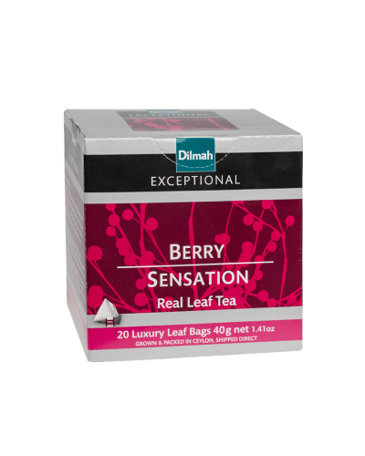 Dilmah Exceptional Berry Sensation to wyjątkowa kombinacja czarnej herbaty cejlońskiej i bogatych aromatów owoców leśnych, w tym jagódmalin oraz świeżych kawałków owoców. Ta herbata wywodzi się z jednego, wyjątkowo wysoko położonego regionu, co gwarantuje jej wyjątkową jakość i smak.