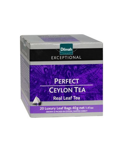 Dilmah Exceptional Perfect Ceylon to prawdziwy hołd dla klasycznej cejlońskiej czarnej herbaty. Ta wyjątkowa herbata dostępna jest w formie 20 stożkowych biodegradowalnych torebek ekspresowych z zawieszką, co sprawia, że jej przygotowanie jest niezwykle proste.